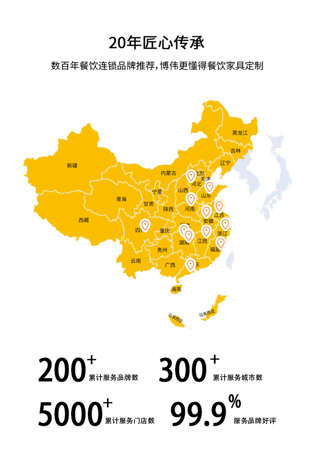 博偉餐飲家具專業(yè)服務(wù)餐飲家具20余年,先后服務(wù)1000+連鎖餐飲,業(yè)務(wù)覆蓋10多個(gè)省份300+城市,用好原料做好桌椅,全國(guó)質(zhì)保,注重品質(zhì)服務(wù)。